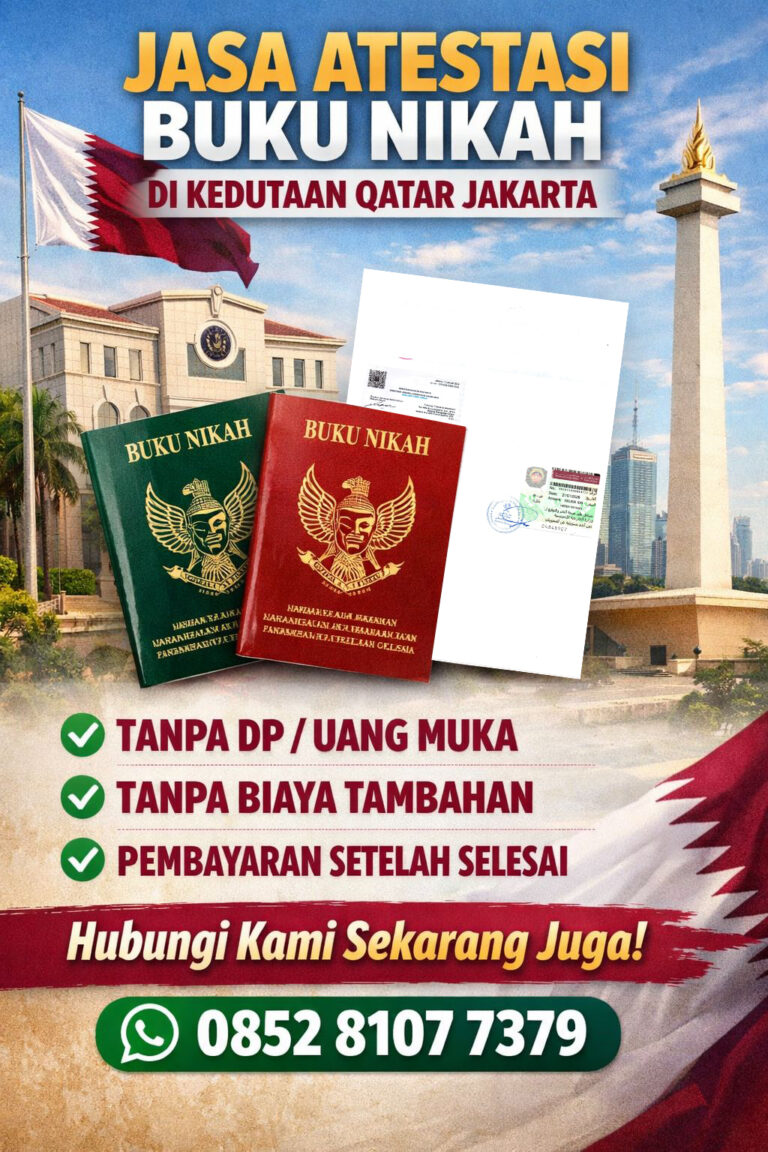 Asahan Jaya Berkah adalah satu-satunya Biro Jasa Atestasi Buku Nikah di Qatar Tepercaya. Jasa Atestasi Buku Nikah di KUA, Jasa Atestasi Buku Nikah di Kemenag, Jasa Atestasi Buku Nikah di Kemenkumham, Jasa Atestasi Buku Nikah di Kemenlu, Jasa Atestasi Buku Nikah di Kedutaan besar Qatar Jakarta